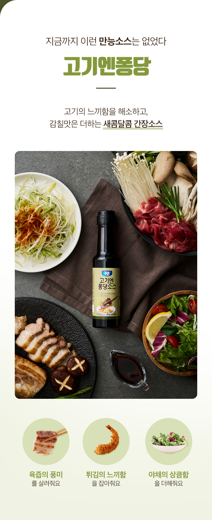 - 새콤달콤한 간장소스 타입의 각종 고기류의 찍어먹는 소스와